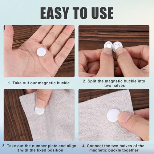 - Easy to Use: Split the magnetic clip into two halves, then put the number cloth on the clothes you want to fix, and finally align the two halves of the magnetic clip and buckle them together.