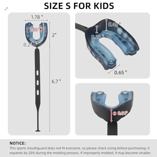 - Important Notes: Size S for kids, size L for youth. These sports mouthguards don't fit everyone. Please check the size carefully before purchasing. Don't use with teeth braces/retainers