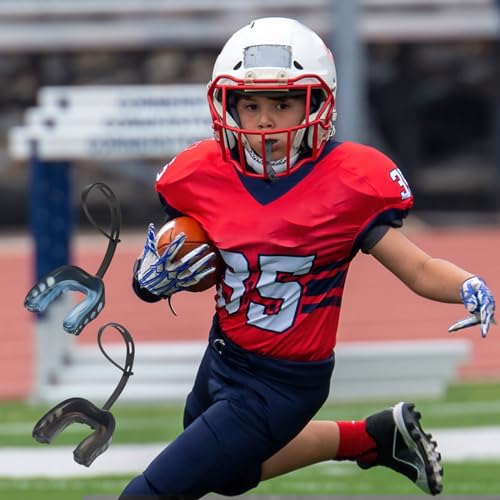 2-Pack Football Mouthguard with Straps and Case, Youth Sports Mouth Guard for Rugby, Hockey, Boxing, MMA, Basketball, Size S