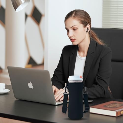 2 Pcs Neoprene Water Bottle Sleeve for Cirkul Water Bottle 32 Oz, Carrier With Strap for Cirkul, Insulated Sleeve for Plastic & Stainless Steel Bottles Black/Blue