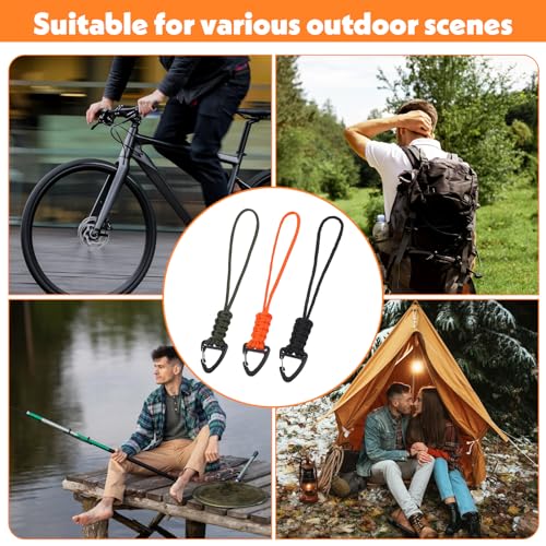 3 Pack Paracord Lanyard with Triangle Carabiner Clip ? Durable Rope Keychain for Keys, Backpack, Outdoor Survival, Camping & Gear (Black, Army Green, Orange)