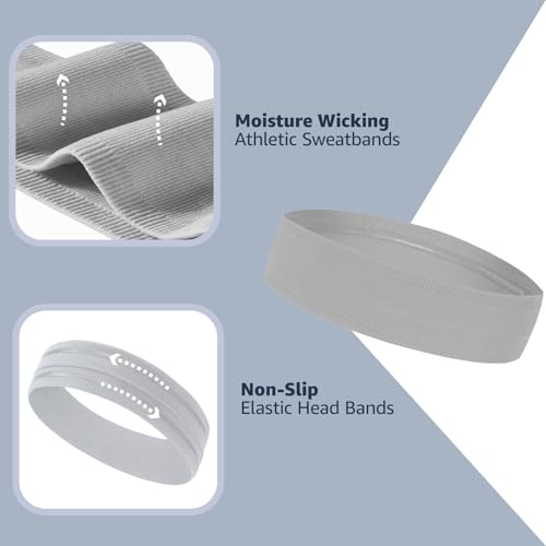 Athletic Sweat Headbands for Women, Moisture Wicking Sweatbands for Men Non-Slip Elastic Sports Hair Bands for Running, Workout, Yoga, Basketball, Tennis, Exercise