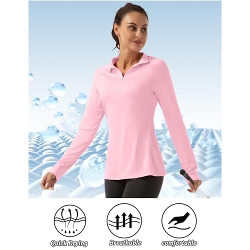 FKEEP Women's Polo Shirts Long Sleeve UPF 50+ Sun Protection Tennis Golf Workout Tops Sport Zipper V Neck