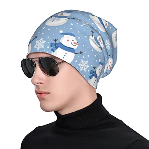LAIPUTER Christmas Cute Snowman Beanie Standard Closed Chemo Knitted Hats Baggy Slouchy Skull Cap Cancer Headwear for Women Men