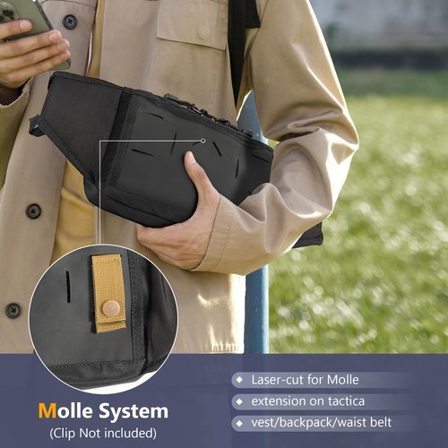 - 【VERSATILE&MULTI WEAR STYLE】: the tactical chest bag can be as a tactical hip bag, tactical belt bag, or tactical crossbody bag, or sling bag, waist bag; Switching from normal sling carry to attachment on a pack strap with back MOLLE system clips, this tactical pack is ready for whatever you have; With removable holster, you can use the tactical fany bag as a normal universal bag.