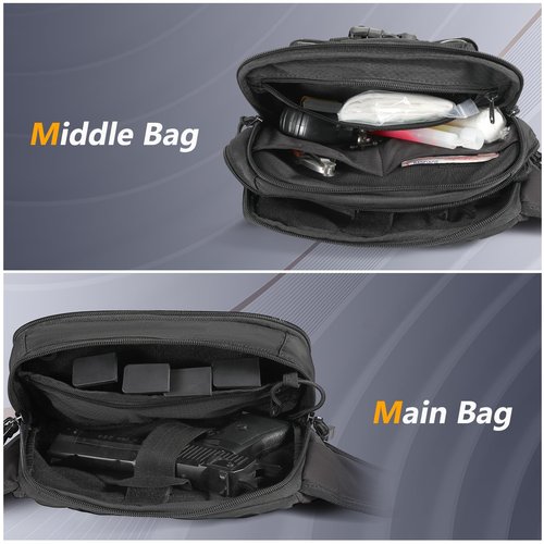- 【AMPLE ROOM&KEEP ORGANIZED】: Well constructed with 3 separate pockets of different sizes for all your needs;The main pocket can easily hold a pis tol lowprofile with Anti-theft zippers; The middle pocket divided several compartment perfect for your valuables for extra security; The front pocket is special for your phone with touch screen.