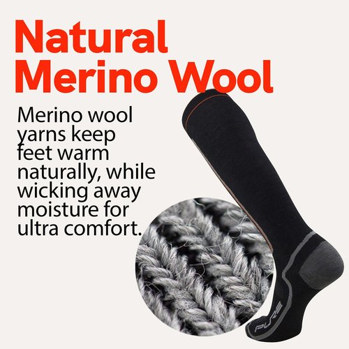 - PREMIUM MERINO WOOL: Merino wool helps keep your feet at the perfect temperature. The ski socks are also moisture wicking, keeping feet light and dry on the ski slopes.