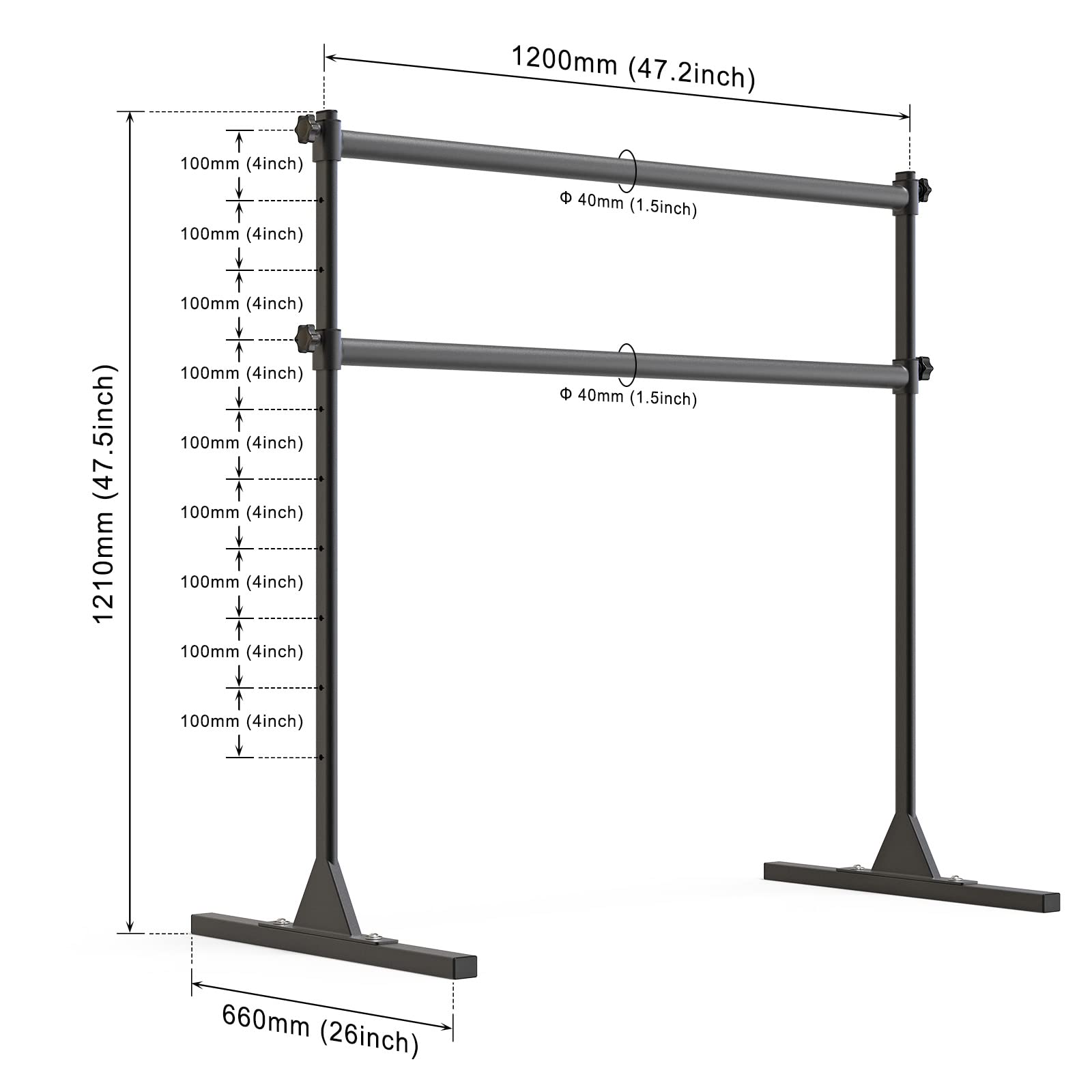 - The robust steel ballet barre, with its star-shaped hand knob design, is stronger than aluminum bars joined by plastic buckles, which may fall apart or slide down after a few use.
